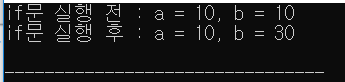 printf("if문 실행 후 : a = %d, b = %d \n", a, b); }