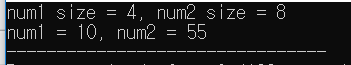 printf("num1 size = %d, num2 size = %d \n", sizeof(num1), sizeof(num2));